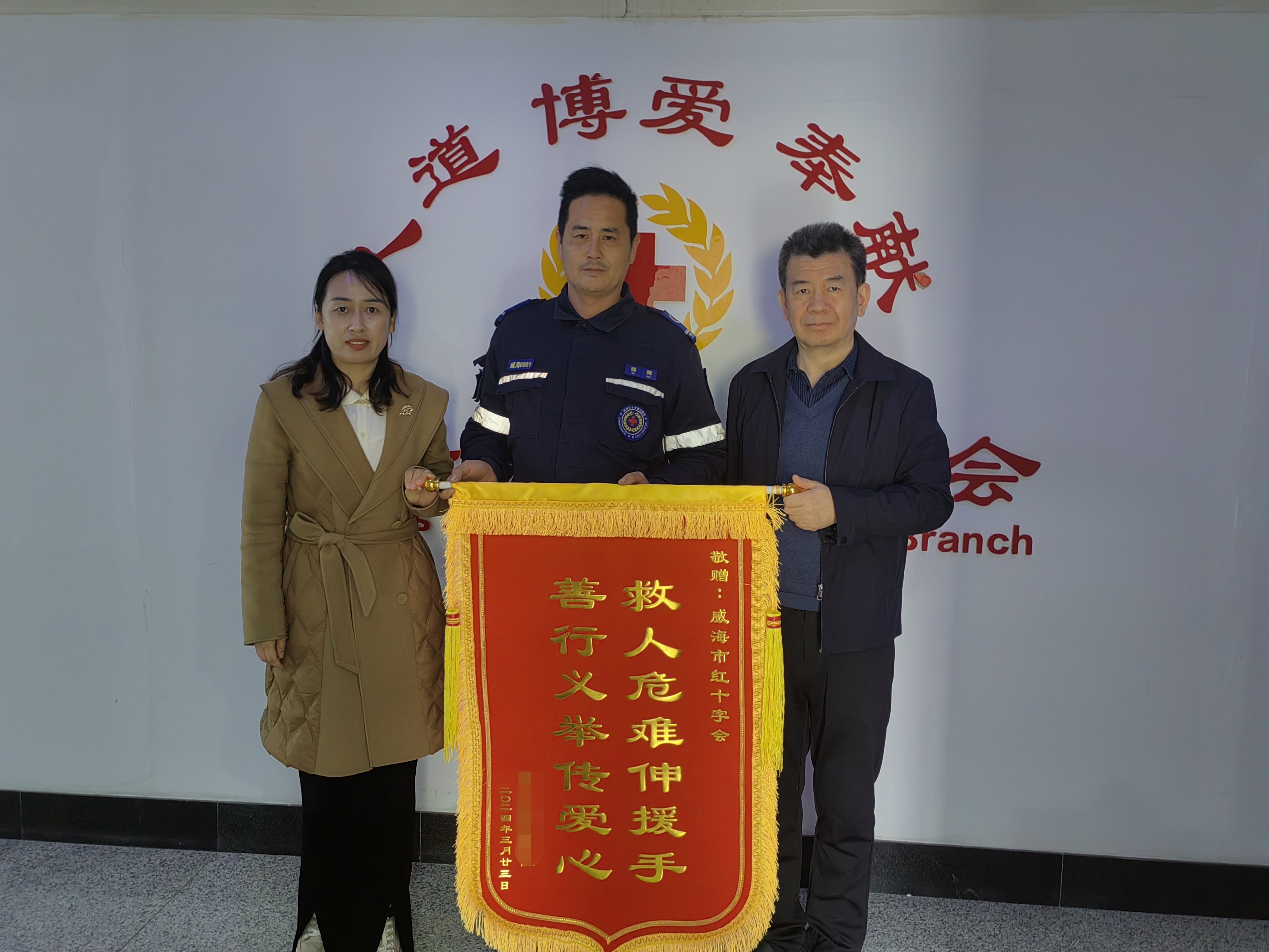 3月25日上午,走失老人的家属代表来到威海市红十字会,将一面“救人危难伸援手 善行义举传爱心”的锦旗送到工作人员手中,诚挚表达对市红十字会和红十字铸诚志愿救援队的感激之情。救援队队长徐辉表示,险情就是命令,今后遇到此类情况,将一如既往、全力以赴,坚决完成救援任务。同时,发挥好救援队的优势特长,服从组织调遣,积极参与到红十字人道救援等志愿服务活动中来,为平安威海建设做出应有的贡献。