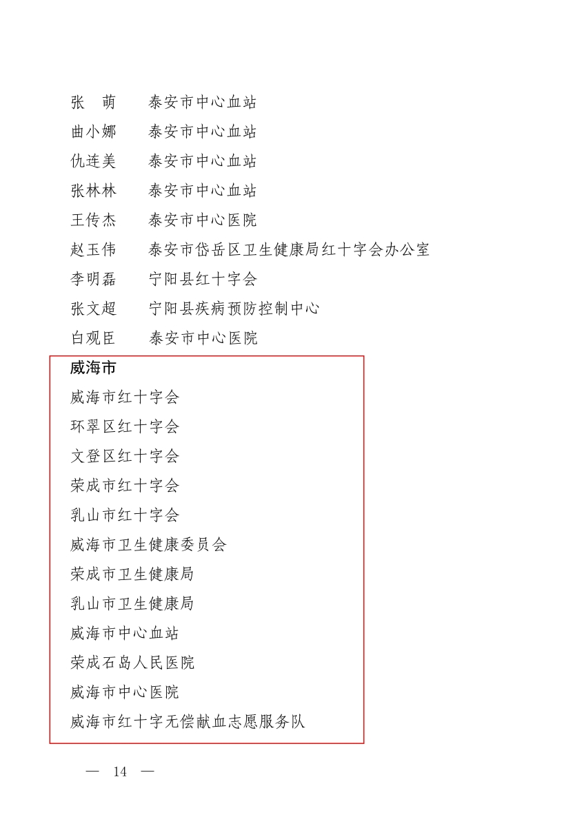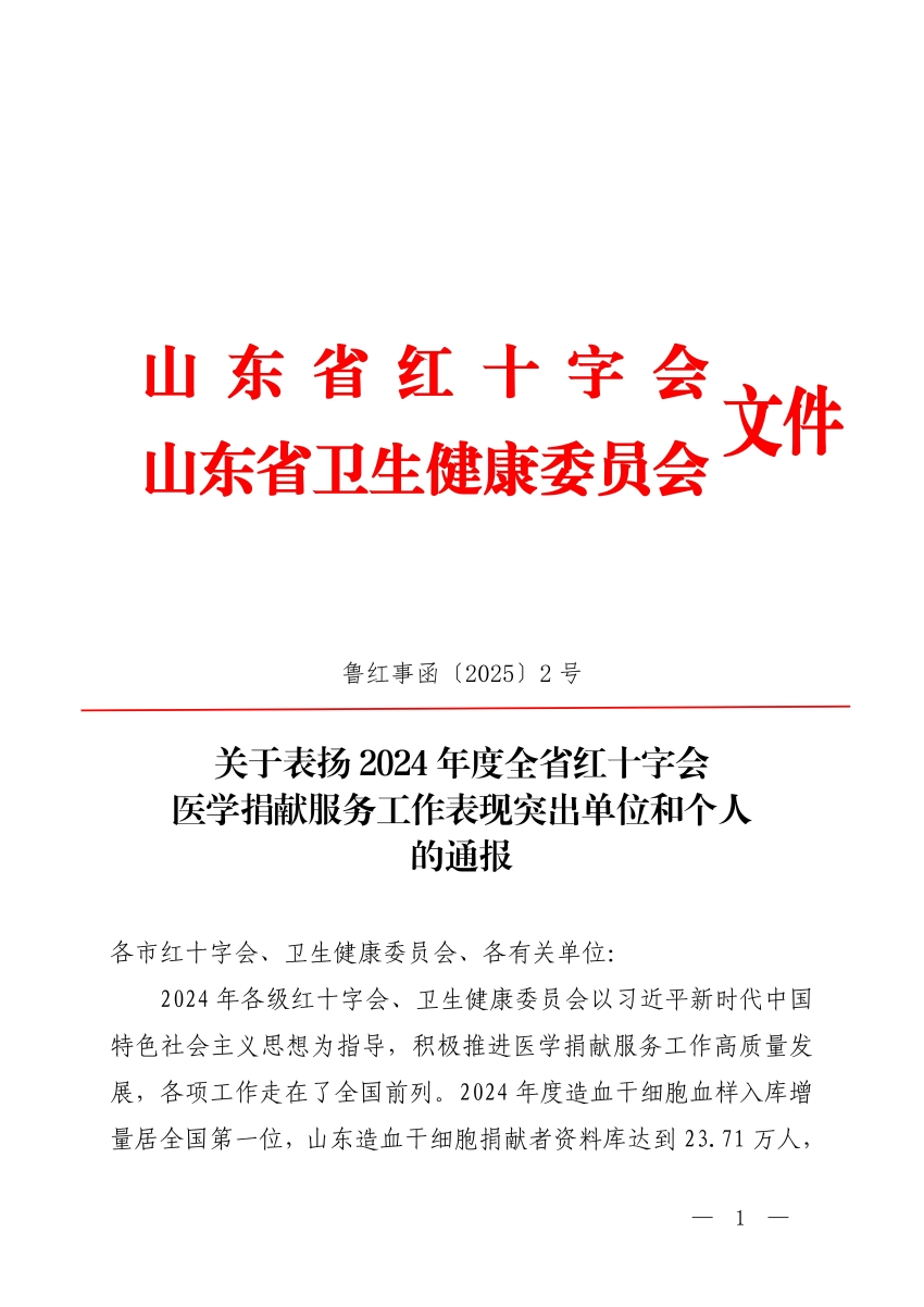 近日,山东省红十字会印发《关于表扬2024年度全省红十字会医学捐献服务工作表现突出单位和个人的通报》(鲁红事函字〔2025〕2号),威海市红十字会、威海市卫生健康委等12个单位获评工作表现突出单位,乔志伟等12名同志获评工作表现突出个人。