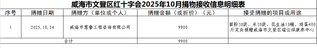 威海市文登区红十字会2025年10月捐物接收信息明细表