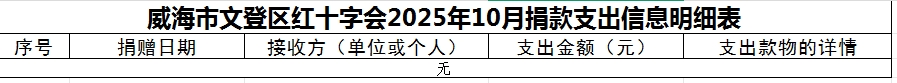 威海市文登区红十字会2025年10月捐款支出信息明细表