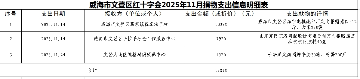 威海市文登区红十字会2025年11月捐物支出信息明细表