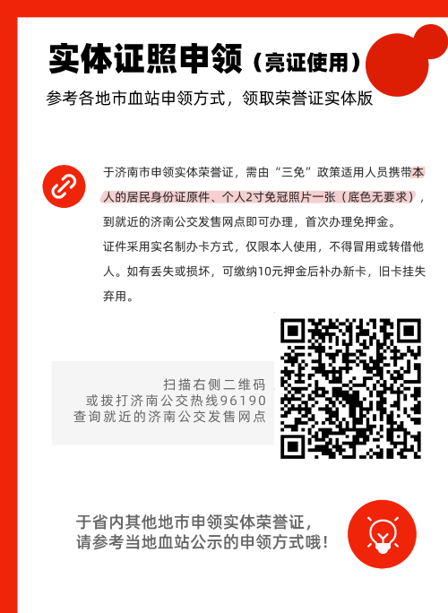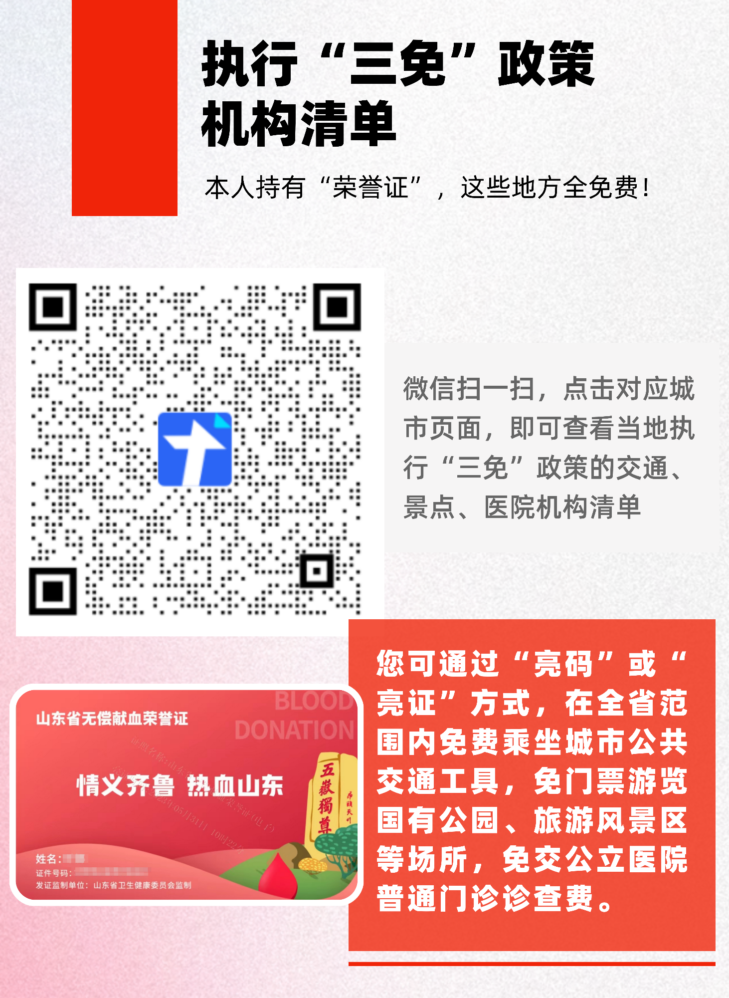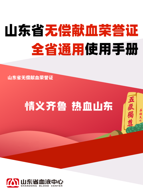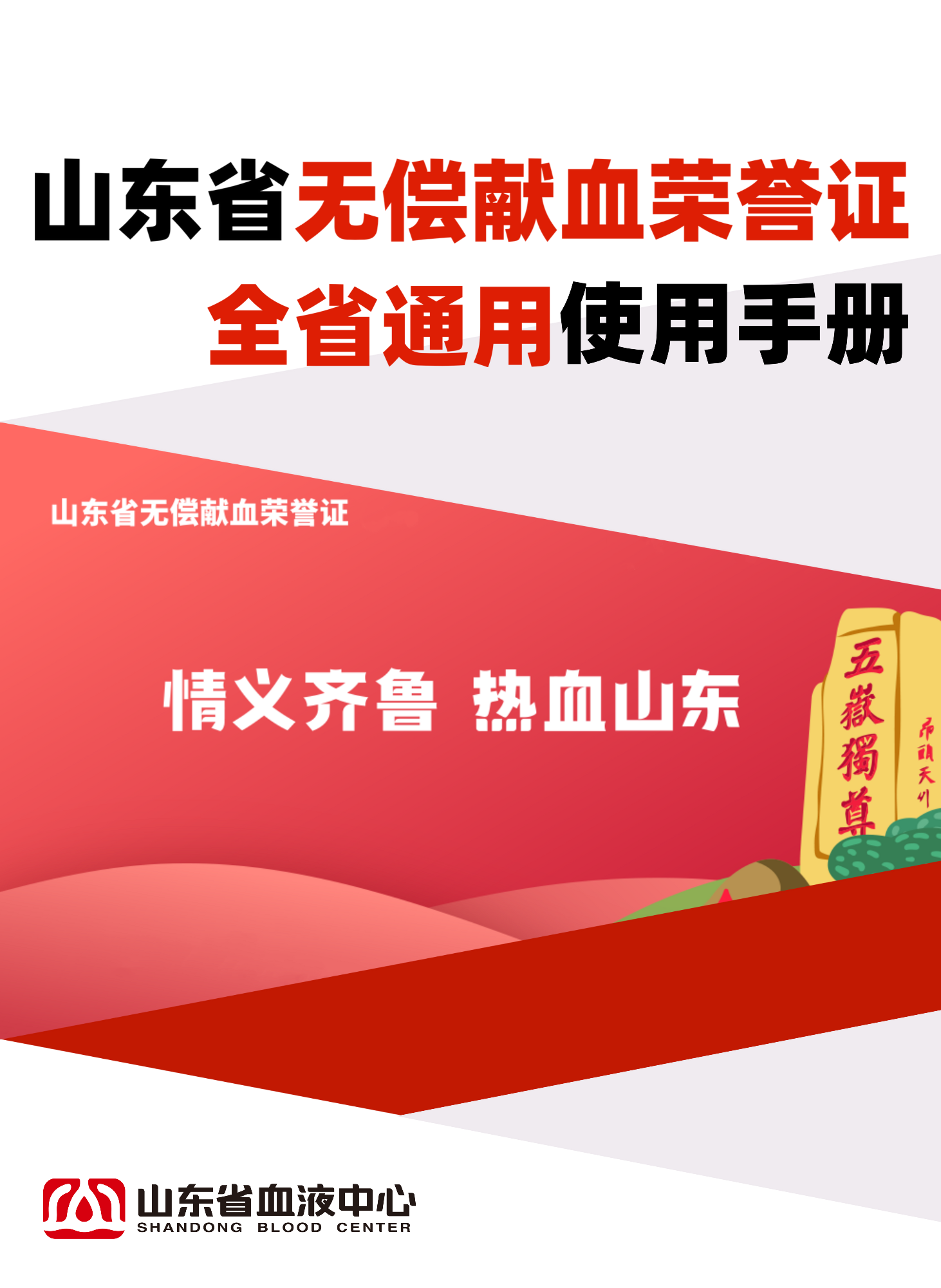 一证通全省!山东省无偿献血荣誉证全省通用使用手册
