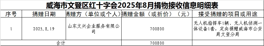 威海市文登区红十字会2025年8月捐物接收信息明细表