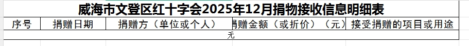 威海市文登区红十字会2025年12月捐物接收信息明细表