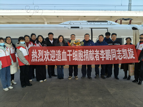 1月23日下午,在济南成功捐献造血干细胞的李鹏,在众人的鲜花与掌声中凯旋。荣成市红十字会、中核检修青岛子公司(筹)领导、员工代表及红十字志愿者专程前往荣成站,热情迎接这位“生命使者”回家。