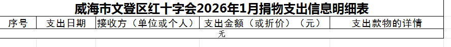 威海市文登区红十字会2026年1月捐物支出信息明细表